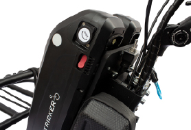 Die Reichweite lässt sich durch weitere Akkus erweitern. Weitere Akkus können, abhängig von Modell, direkt am Bike montiert oder lose mitgeführt werden.