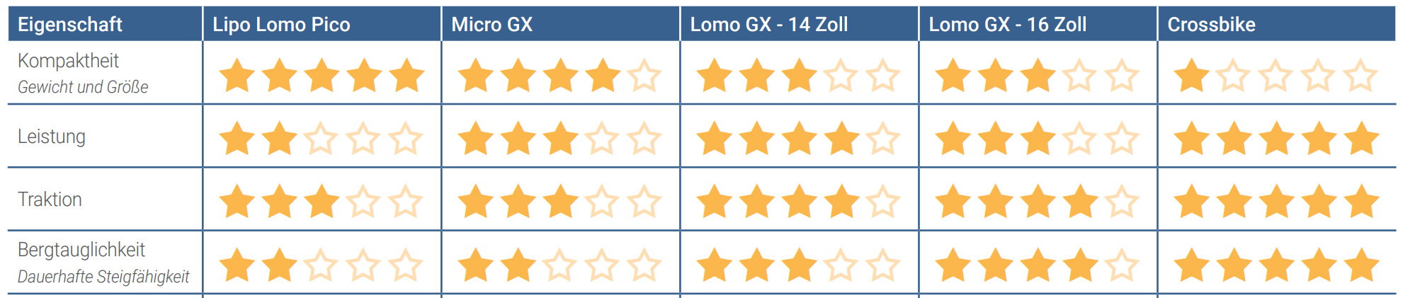 Zu den weiteren Produktmerkmalen gehören ein intuitives, mehrsprachiges Farbdisplay und hohe Traktion durch breite Bereifung mit ausdauerndem Profil. Gute Schutzbleche, die effektiv Schmutz und Wasser abweisen. Kraftvolle, leise sowie bergfähige Motoren mit Temperaturüberwachung.