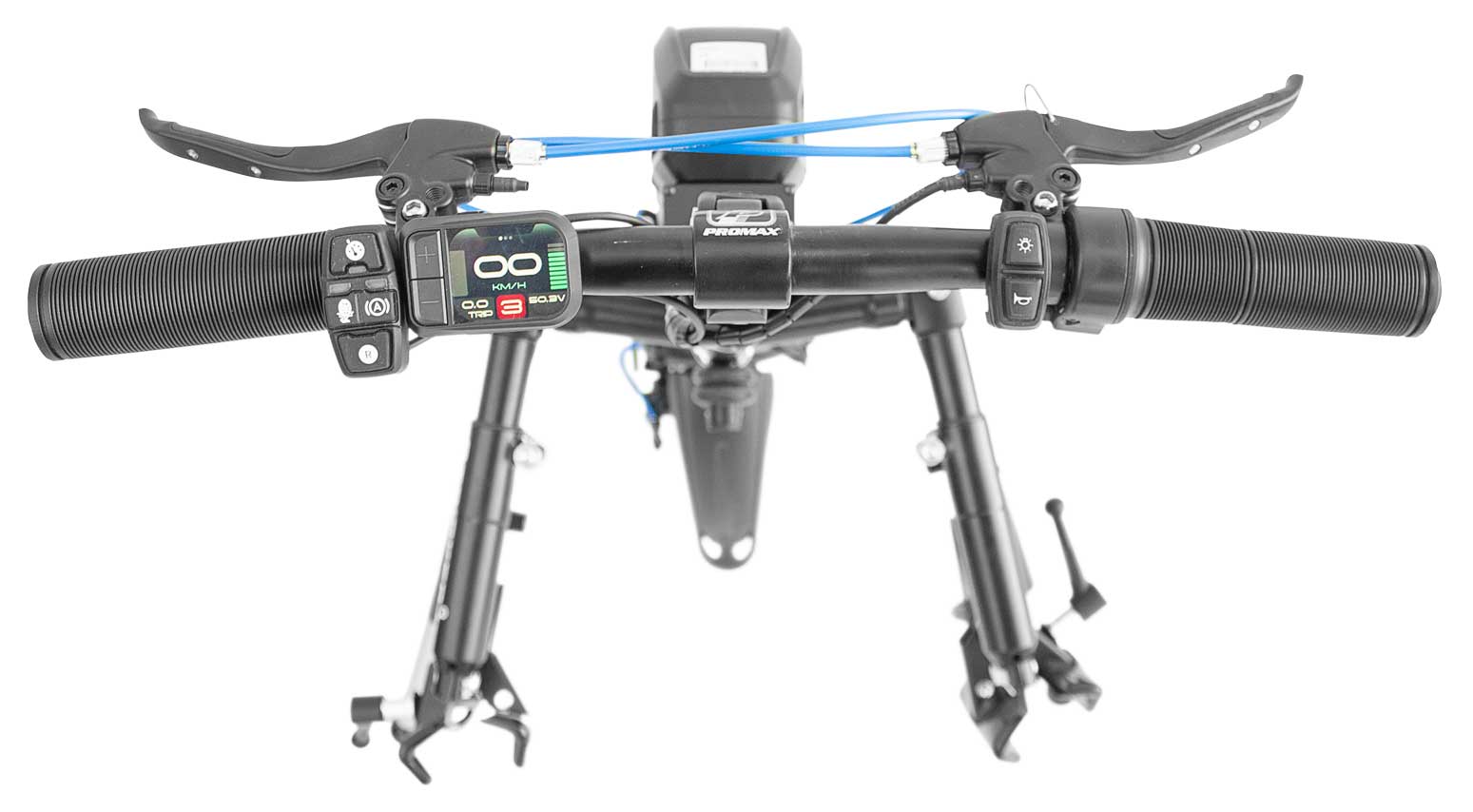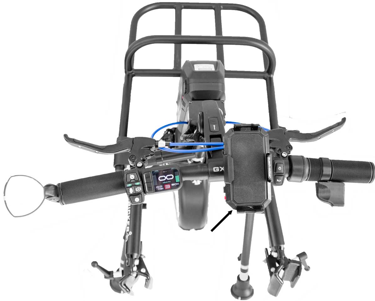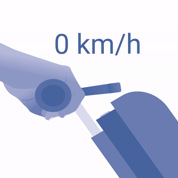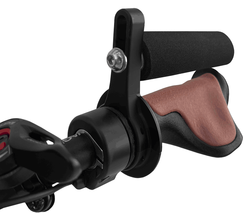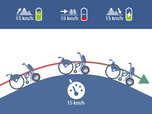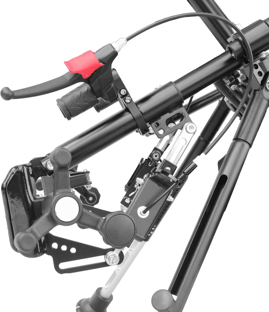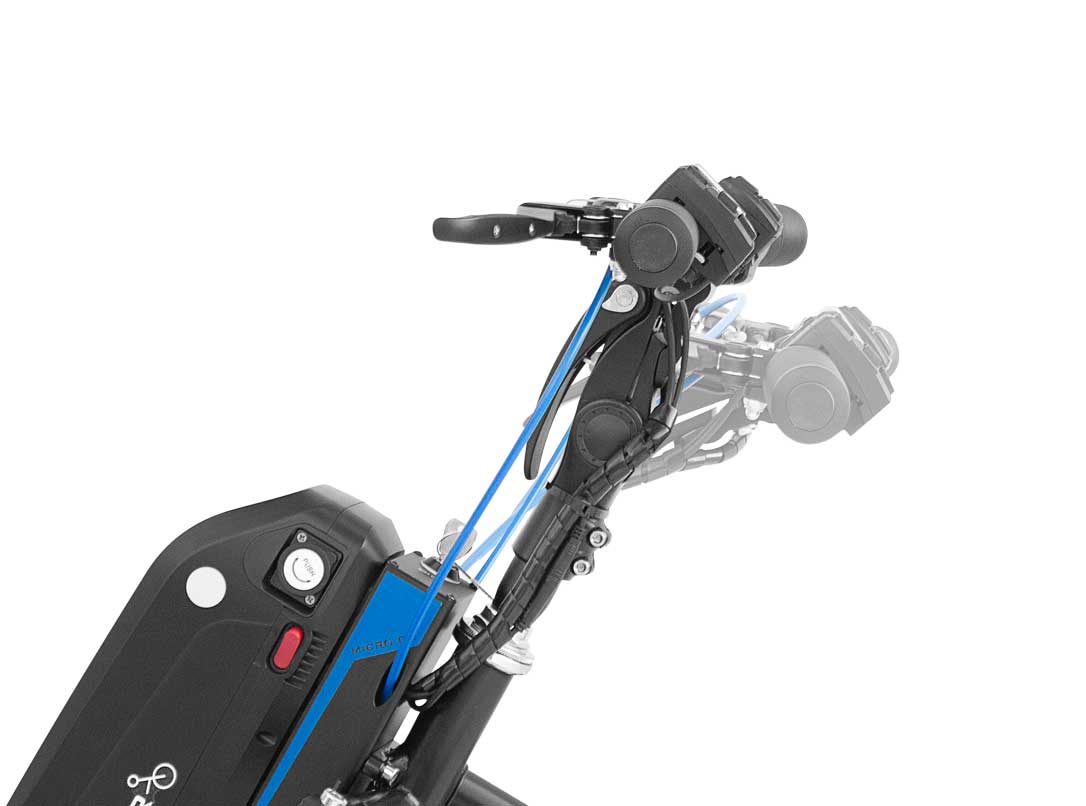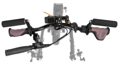 Eine Stufeneinstellung ermöglicht eine Anpassung der Motorleistung an die Fahrsituation. Gesteuert wird das Rollstuhlzuggerät durch Lenkbewegungen an der Lenkstange. Zum Bremsen befinden sich Bremshebel an den Handgriffen der Lenkstange. Ein Umgreifen zum Bremsen ist nicht erforderlich.