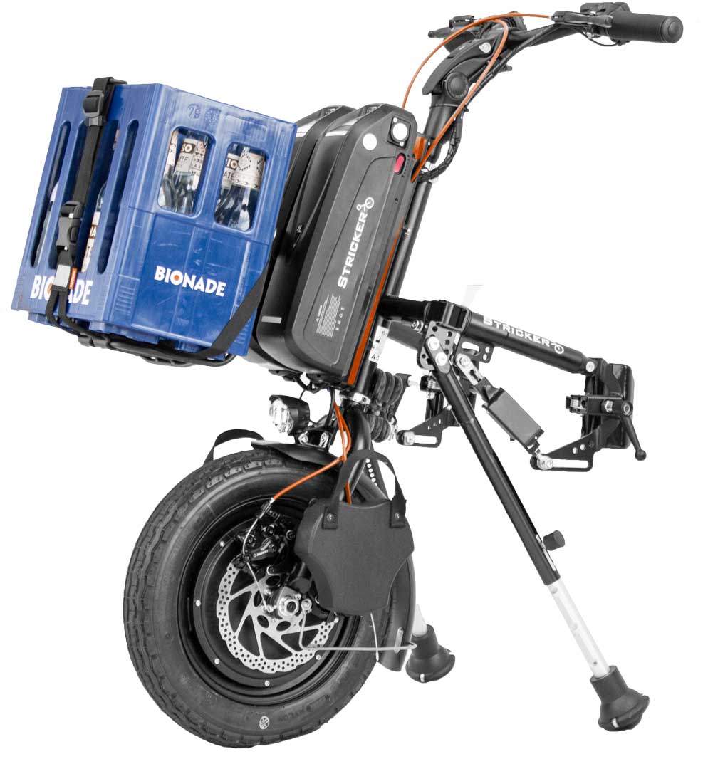 Elektronische Rollstuhlzuggeräte von Stricker eignen sich für einen Wiedereinsatz. Durch den Kupplungsmechanismus kann auf einen Umbau am Rollstuhl oder am Vorspann verzichtet werden. Es erlaubt die Kopplung an verschiedene Profil- und Rahmenformen. Ein Wiedereinsatz ist nach einer Nachjustierung/Einstellung des Vorspannes, die in wenigen Minuten erfolgt, problemlos möglich.