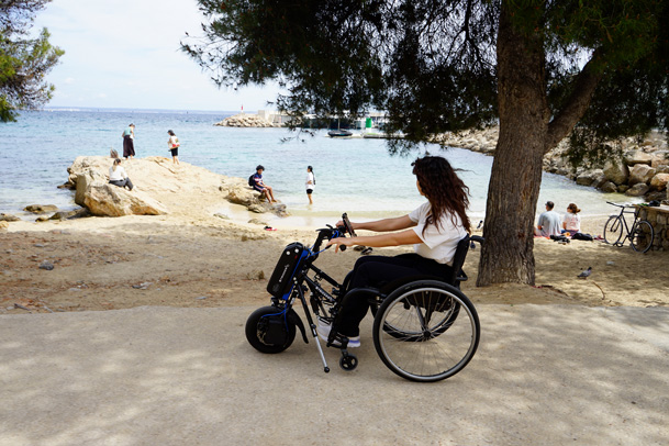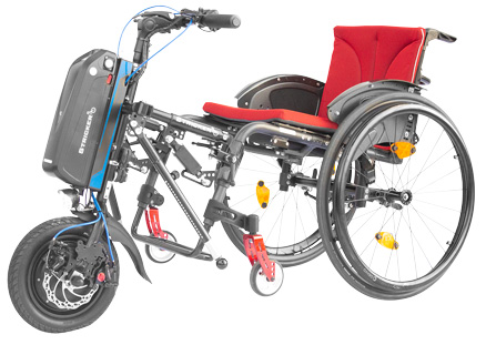 Elektronische Rollstuhlzuggeräte können alternativ zu einem Handhebelfahrer oder einem Elektrorollstuhl eingesetzt werden.